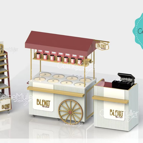 Retail Coffee Standing Shop Coffee Bar Cart Custom Coffee Counter Stall