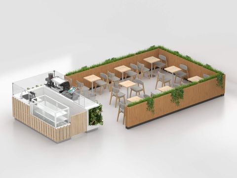 Wood Grain Coffee Kiosk with Seating Area Decor Mall Cafe Counter Table and Chairs Design Idea for Sale