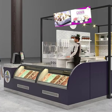 Blue Custom Made Gelato Snack Kiosk Fried Ice Cream Mall Display Counter Custom Food Ice Cream Booth