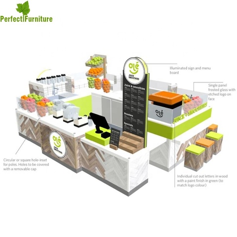 Special Style Juice Kiosk New Design Mall Fruit Drink Counter Booth